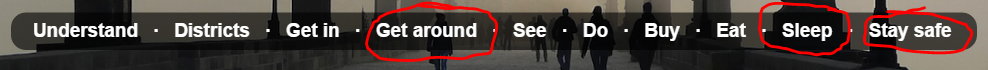 Co je ale na Wikitravel skvělé jsou některé záložky v menu, a to konkrétně “sleep” (v destinacích, na které je i Google krátký, dá dobrý tip na ubytování), pak “stay safe” (občas jsou tam dobré tipy typu: “Nekupujte výhodné diamanty od lidí v průchodu – nejsou pravé.”) a hlavně “get around” (hodí se, když se chcete podívat někam za město).
